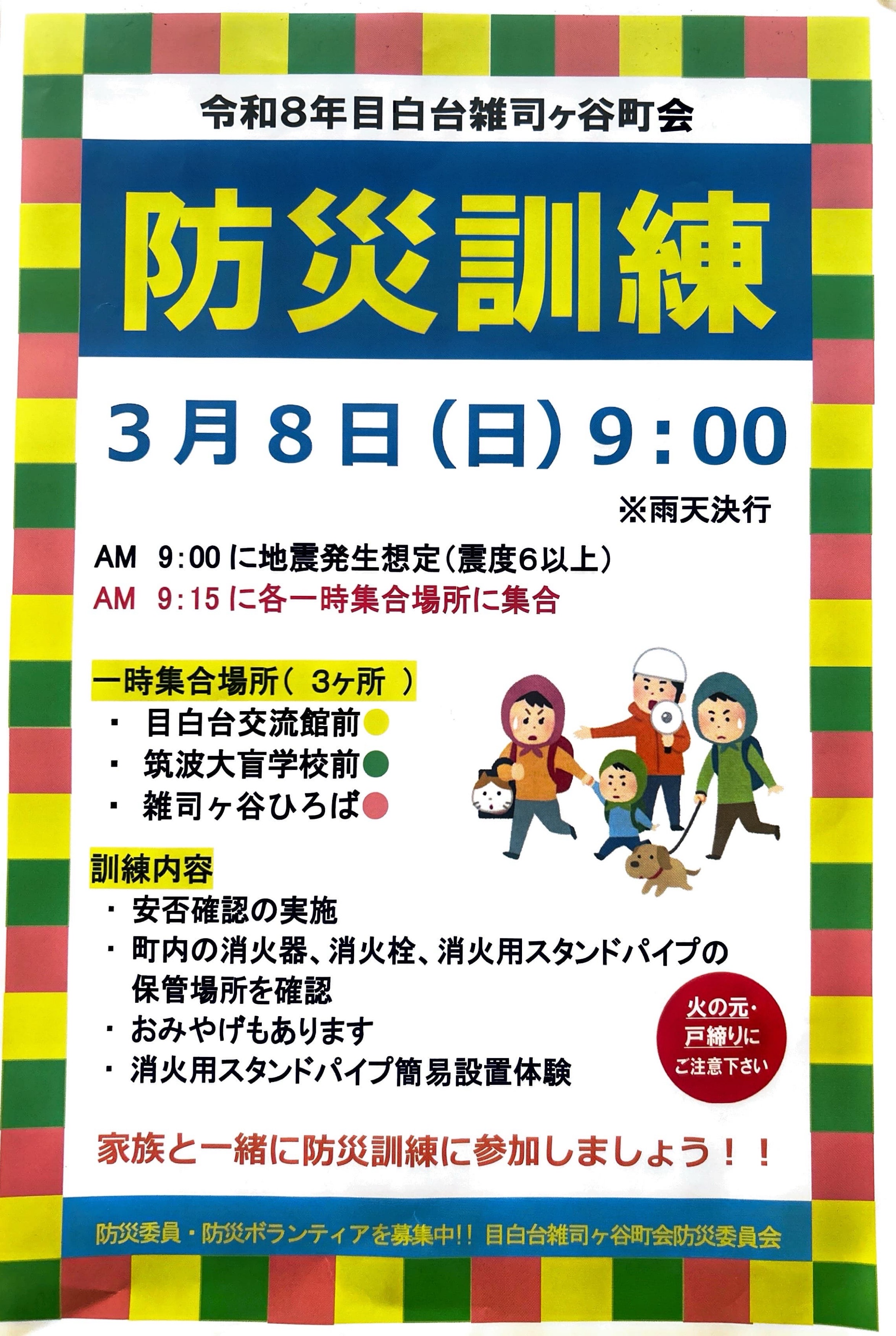 | 問い合わせ先 | 目白台雑司ヶ谷町会 防災委員会 |