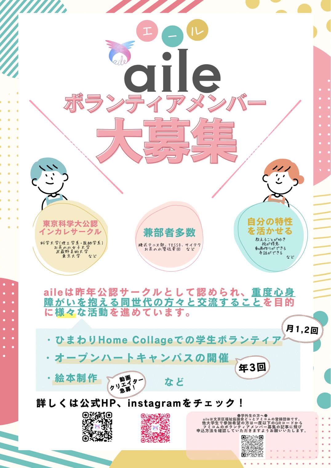 aileの活動にボランティアメンバーとして参加してくださる方を大募集中です!