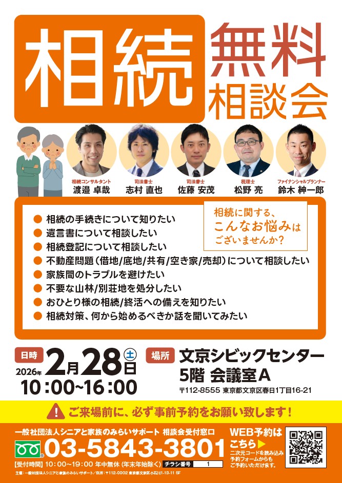 【無料個別相談会】2026年2月28日『 相続 』無料相談会 @文京シビックセンター