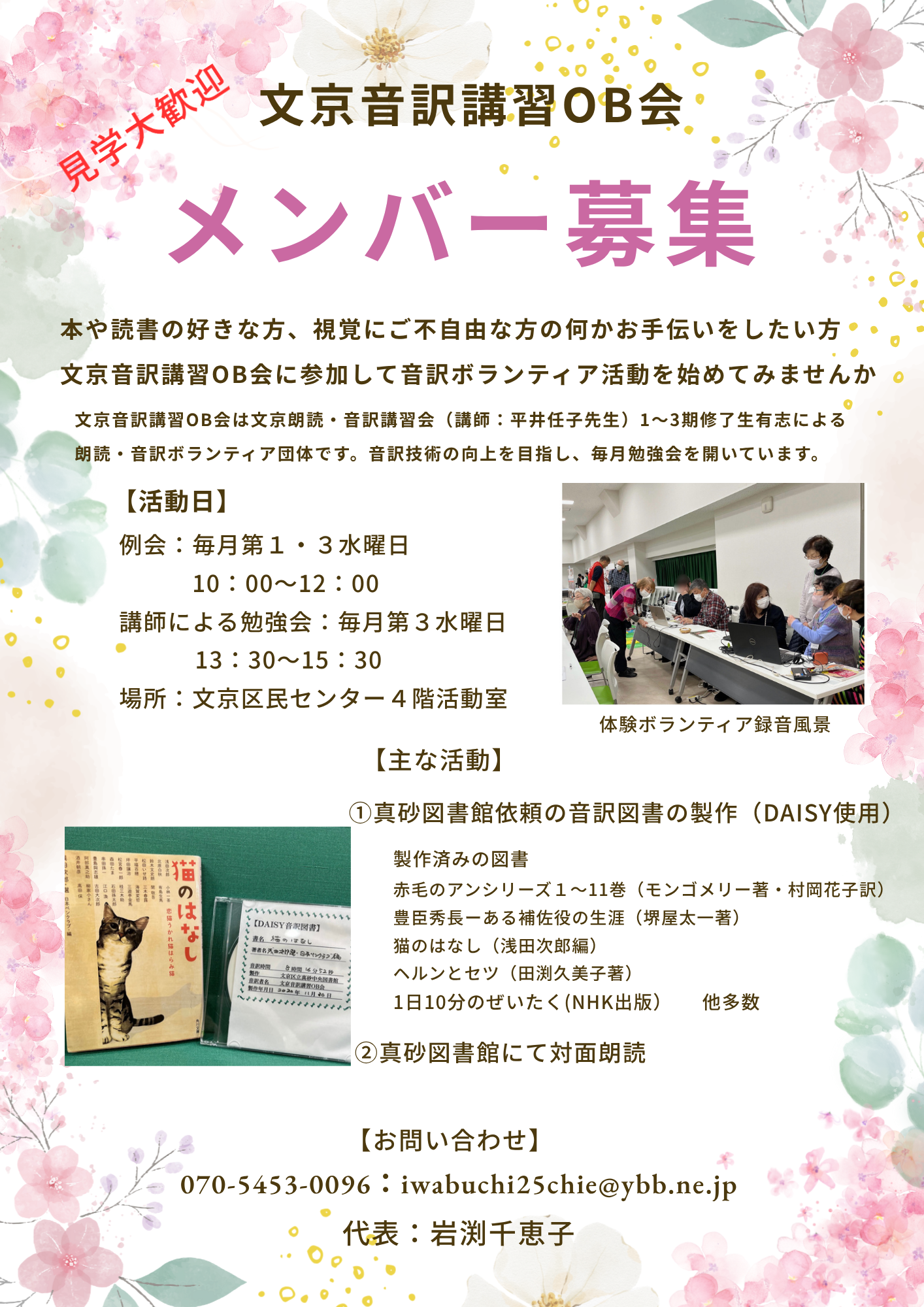 文京音訳講習OB会に参加して音訳ボランティア活動を始めてみませんか