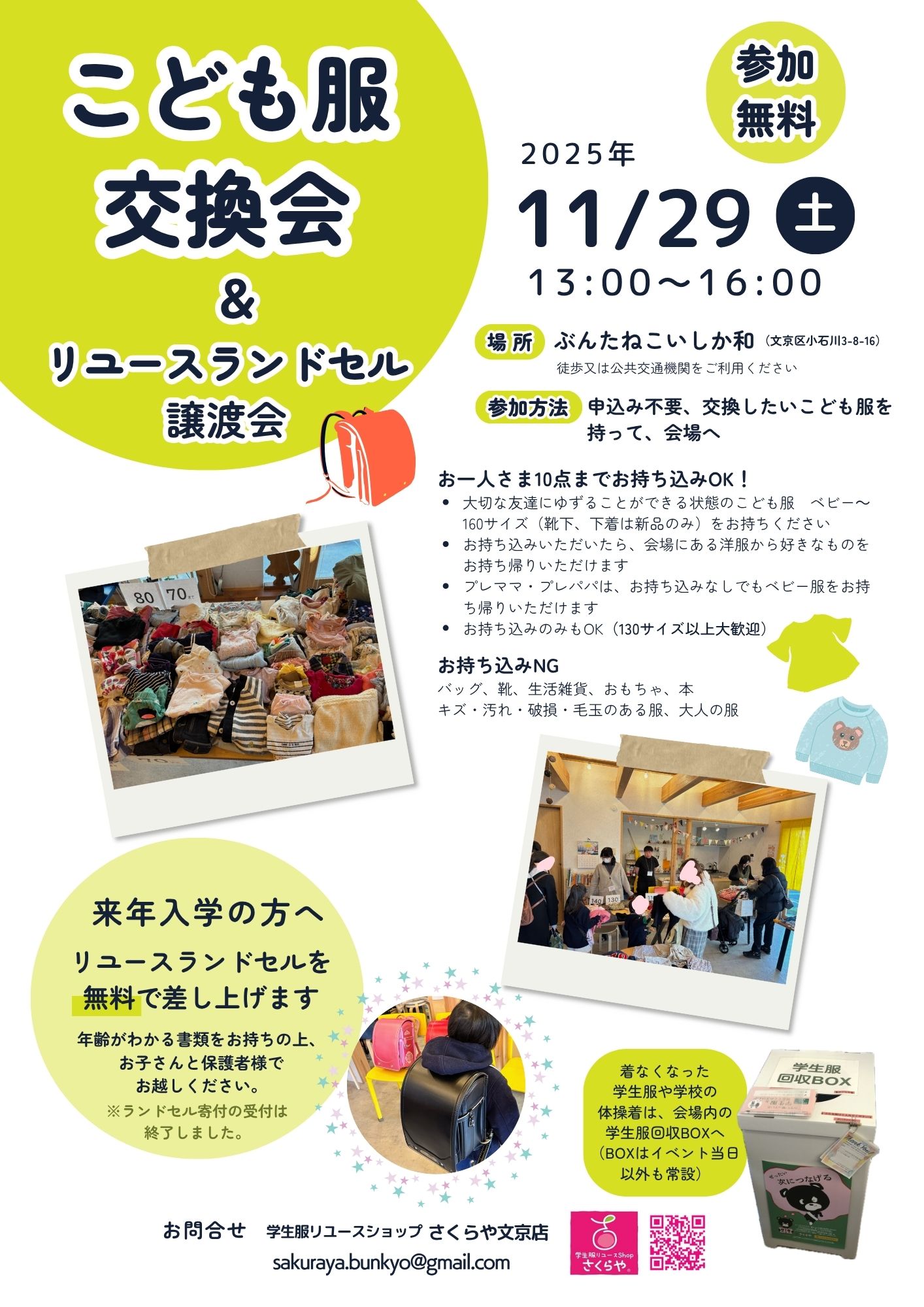 こども服交換会&リユースランドセル譲渡会